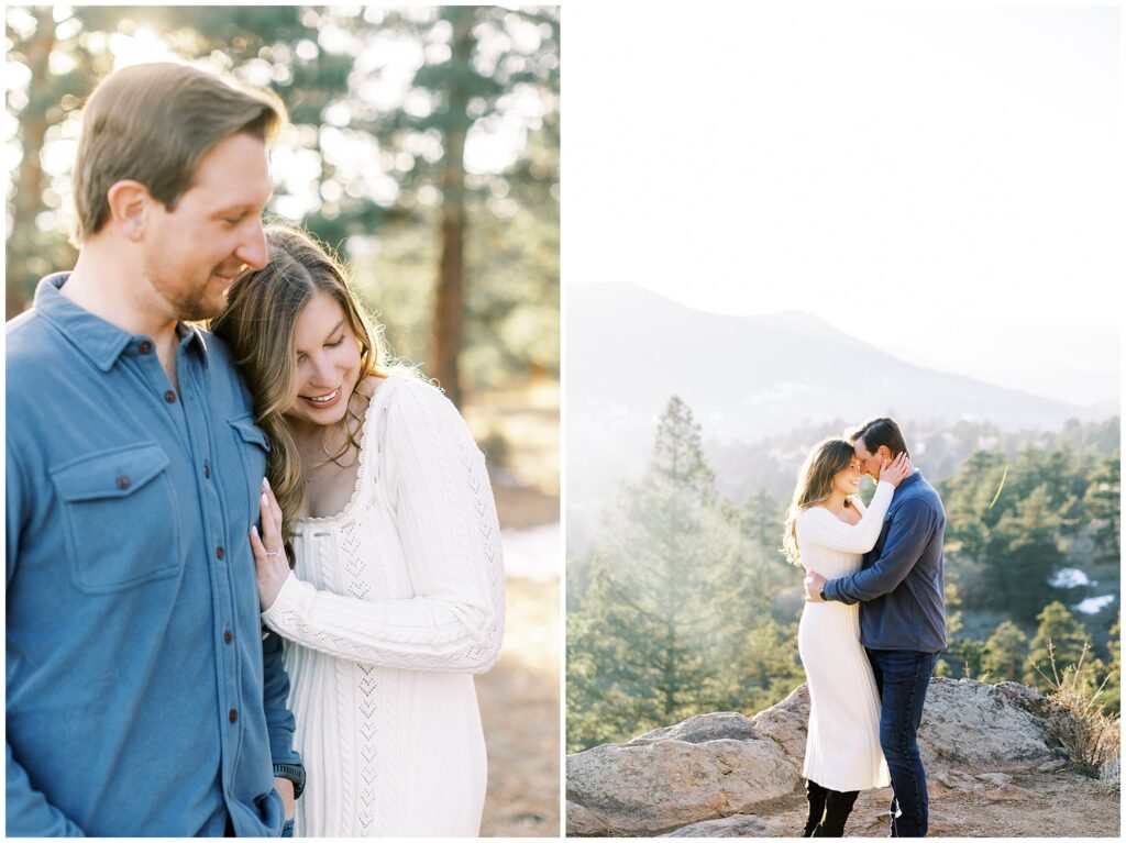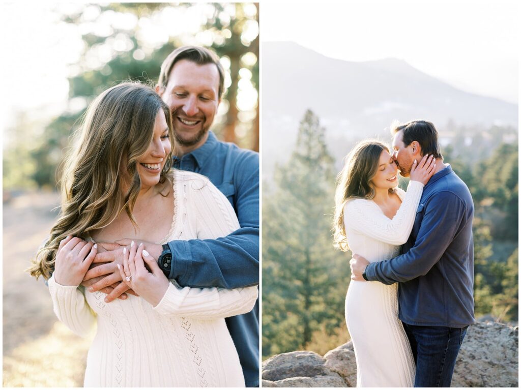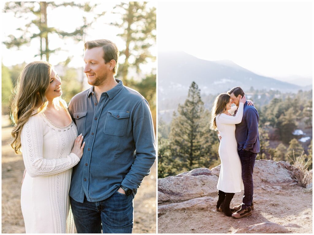One of the things I love most about Mt. Falcon West is how versatile it is. Even in winter, the open views and textured landscape photograph beautifully, offering that iconic Colorado mountain look year-round. It’s especially ideal for couples planning a refined, romantic wedding who want their engagement photos to feel intentional and artful.