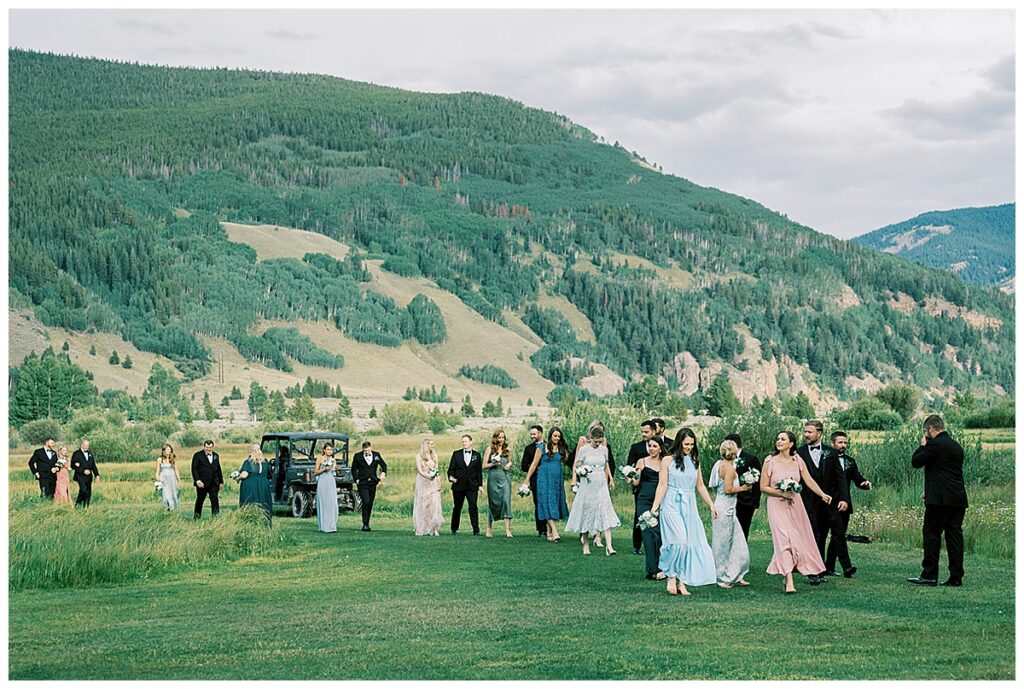 Against the greens of the alpine fields and the blues of the Colorado sky, the pink and blue palette felt joyful, elevated, and perfectly suited for a summer wedding in Vail.