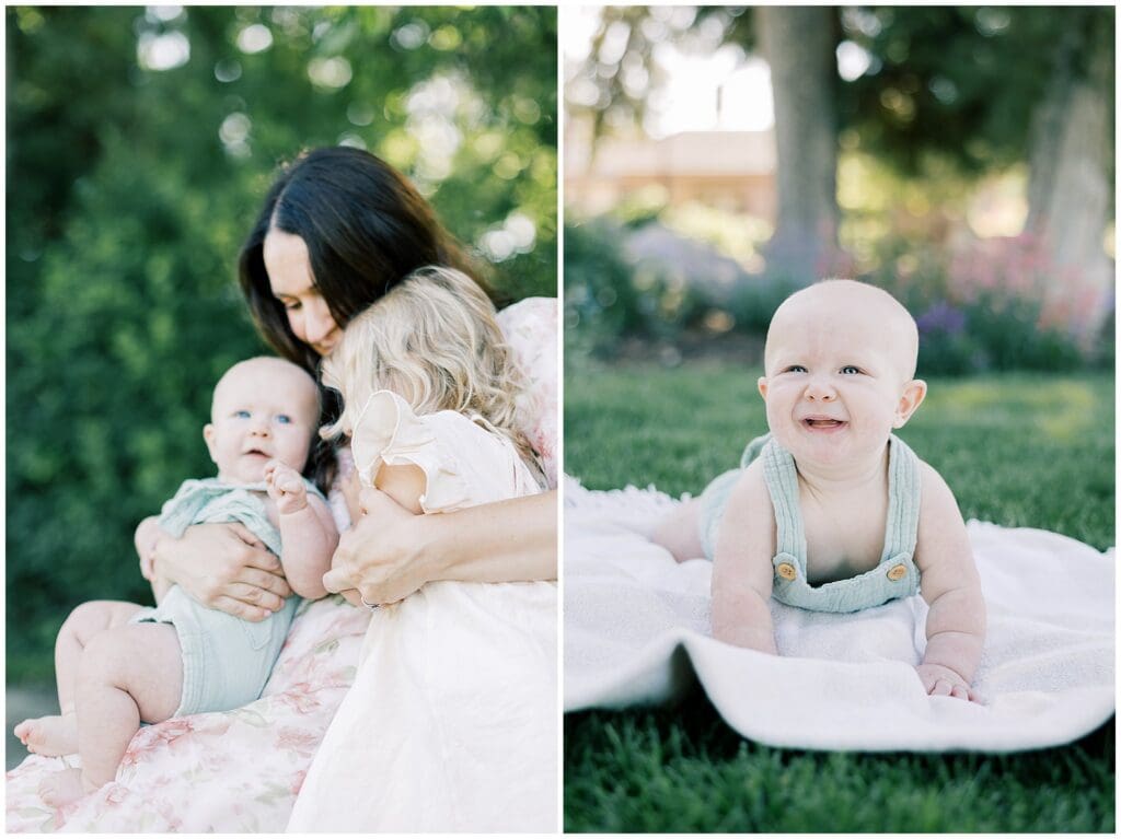 I photograph family sessions throughout Denver, Highlands Ranch, and surrounding areas, offering both outdoor garden locations like this and in-studio options for a more minimal, timeless feel.